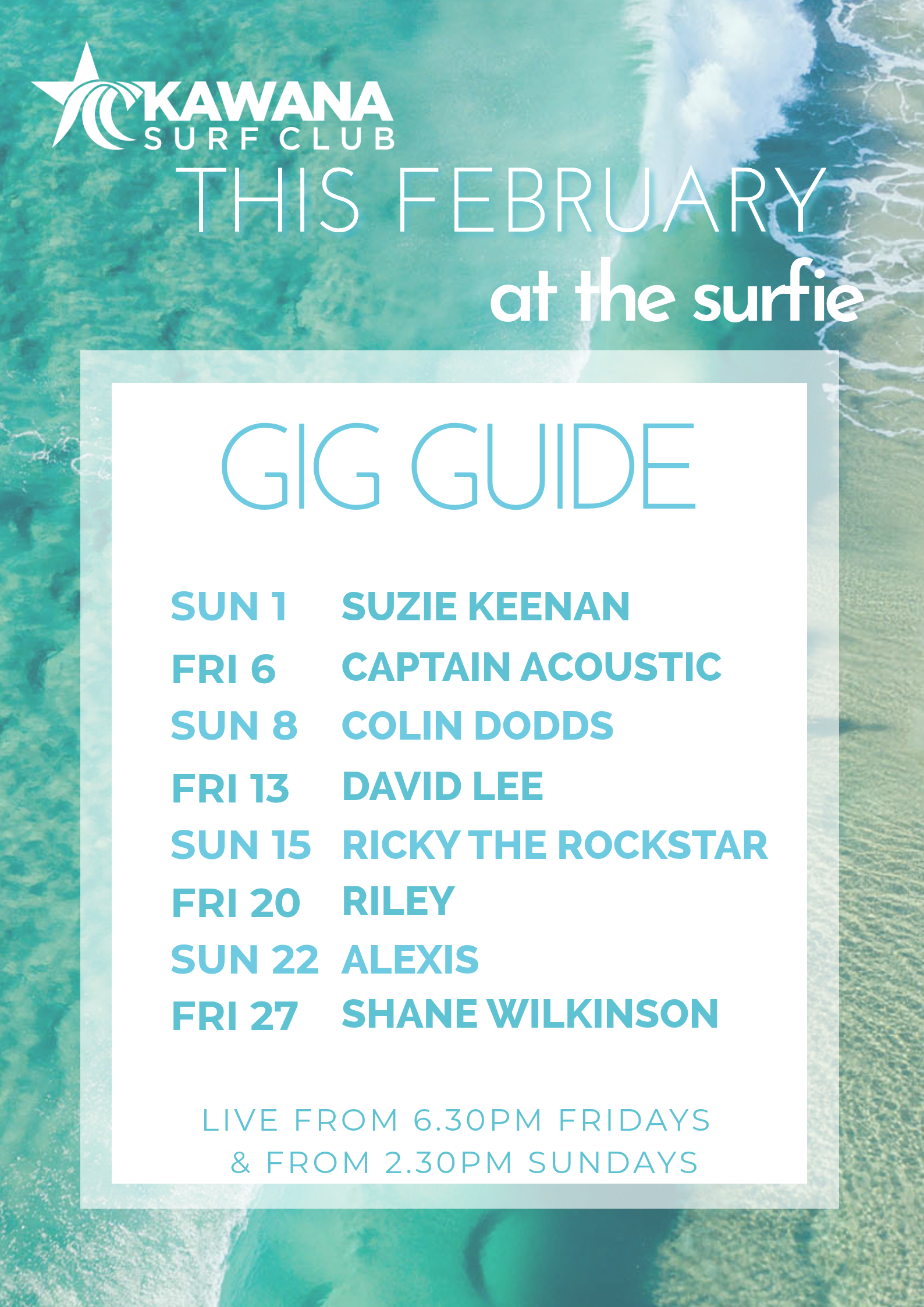 THIS MONTH’S GIG GUIDE AT THE SURFIE!